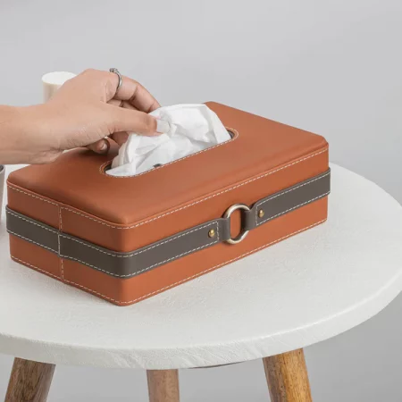 Designed for your home, car or office, our Tissue Box is the most convenient item you can have. It is made with high quality leatherette for a contemporary look. Commonly available refill boxes can be used for this.